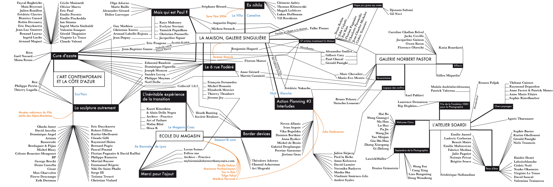 3bisf Action Planning #3 Botox[s] Cure d’Azote Ecole du Magasin Glassbox L’art contemporain et la Cote d’Azur La Maison, galerie singulière La Maison abandonnée, Villa Cameline lacritique.org Le Magasin, Cnac Musée d’art contemporain de Lyon Musées nationaux du XXe siècle des Alpes-Maritimes Season 18 Villa Arson
